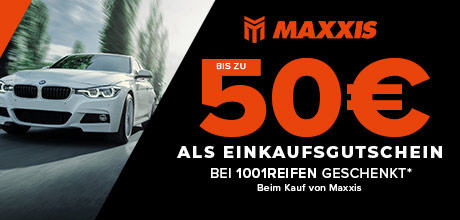 ICH PROFITIERE DAVON!Bis zum 01.02 | Erhalten Sie bis zu 50 € 1001Reifen-Gutschein beim Kauf von MAXXIS Reifen. Starke Leistung, vielseitige Einsatzbereiche und ein hervorragendes Preis-Leistungs-Verhältnis. Siehe Bedingungen.
